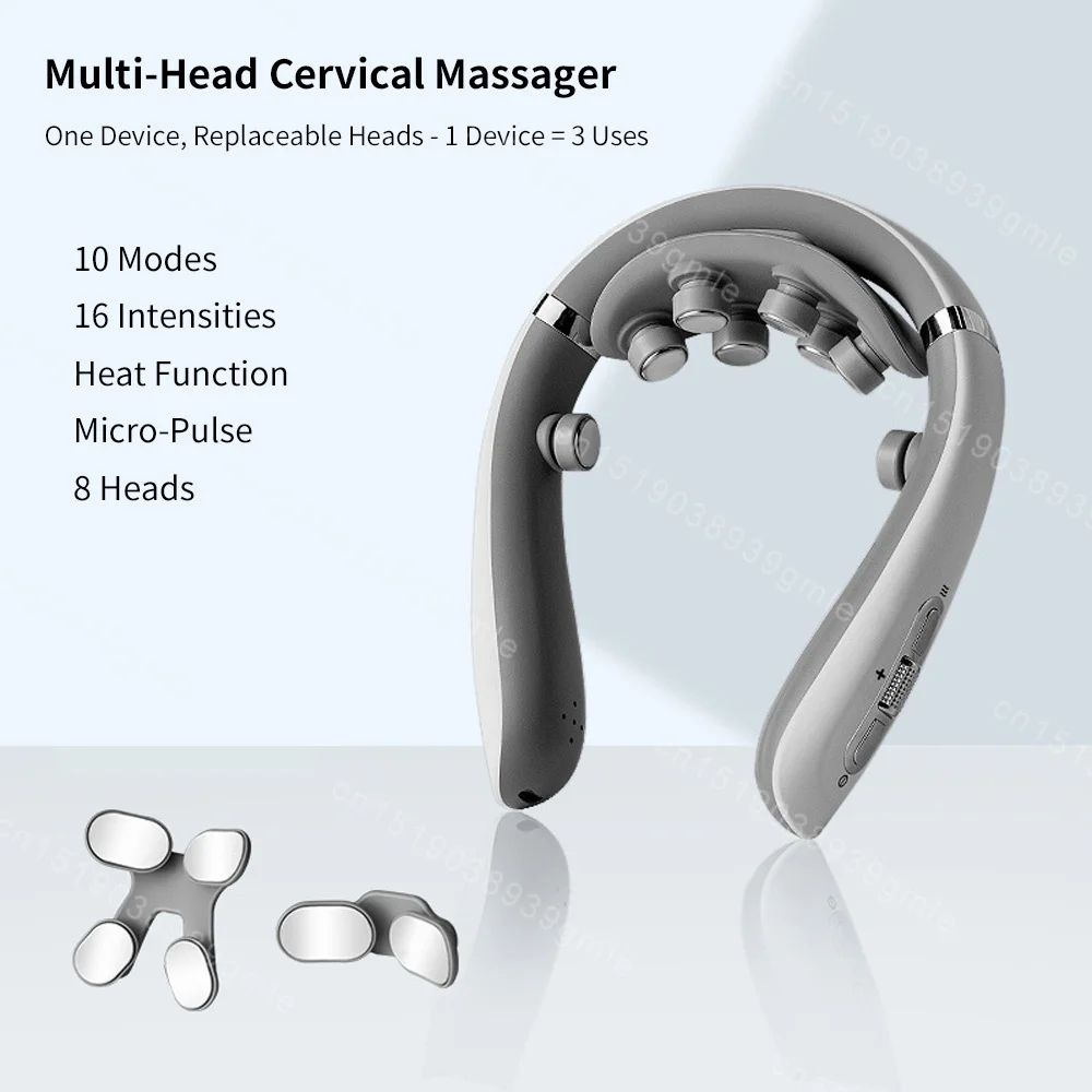 Wireless Electric Neck Massager – Microcurrent Therapy with Heat & Multi-Head Kneading